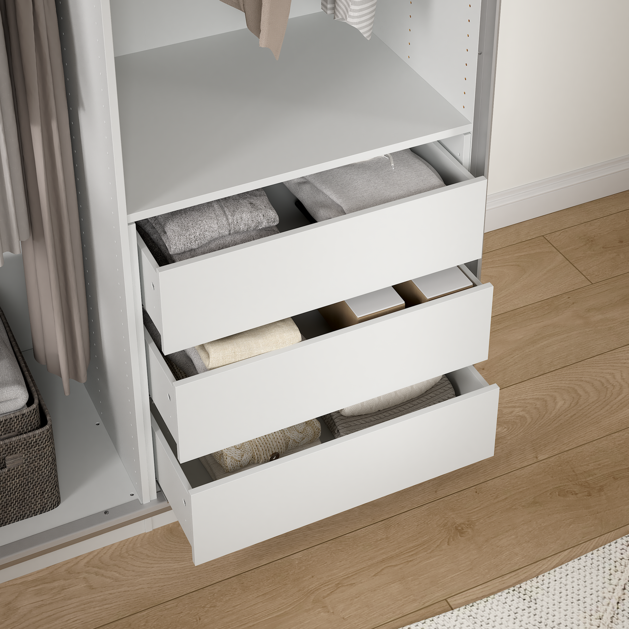 Skuffeinnsats til Lind Nest skyvedørsløsning, med tre romslige skuffer for organisert oppbevaring.