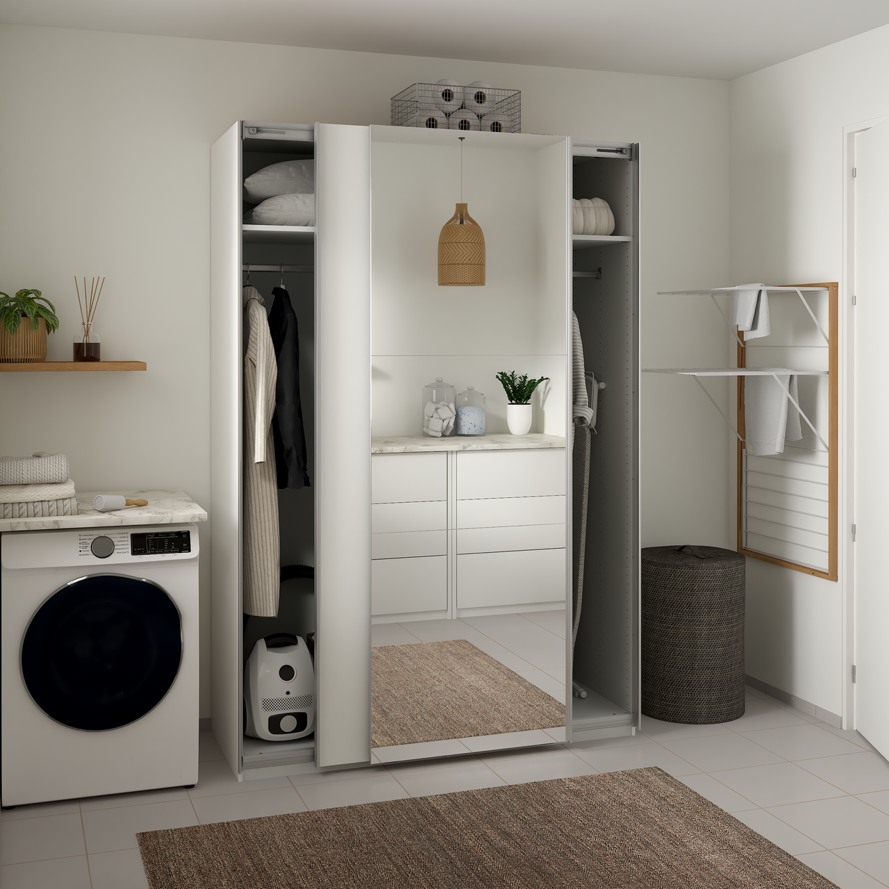 Lind Nest er en fleksibel garderobeløsning der man kan tilpasse garderoben akkurat slik man ønsker. Enten man vil ha det stilrent og minimalistisk eller fullt av smarte oppbevaringsløsninger, tilbyr Lind Nest friheten til å skape en garderobe som passer perfekt til ditt hjem og din hverdag. Man kan også supplere med ekstra deler og moduler for å tilpasse garderoben videre etter behov. Pakken består av 6 kolli, som sammen utgjør et komplett skap på 150 x 220 x 67 cm.