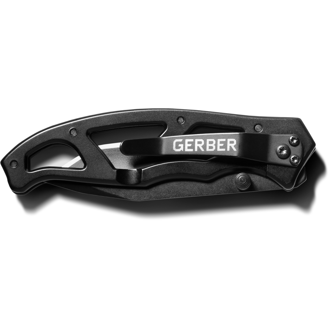 Denne foldekniven fra Gerber har rammelås for trygg bruk, og kan festes i beltet.