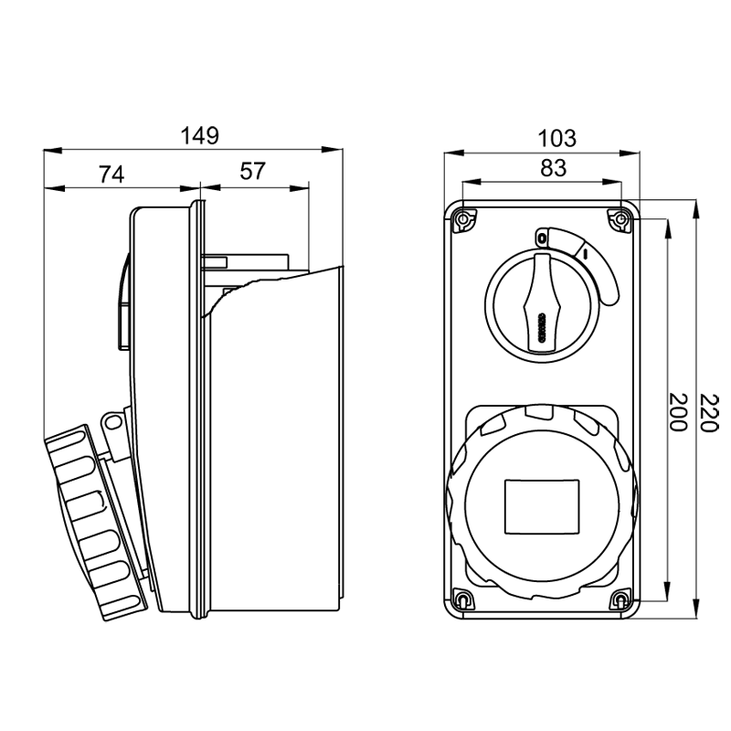 Denne stikkontakten fra Gewiss kommer med dreiebryter.