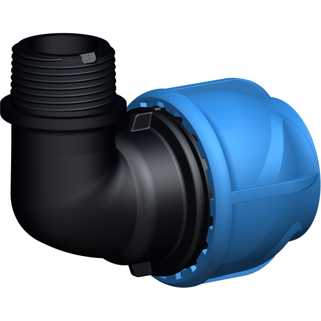 Koblingen er laget i plast, og har utvendige gjenger.