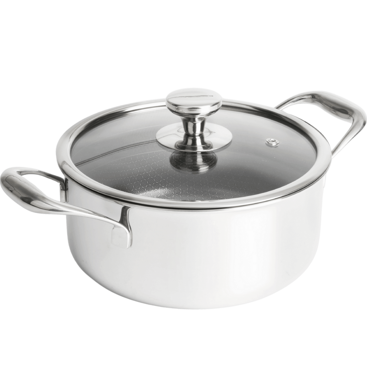 Allsidig hybridgryte med lokk, keramisk slipp-lett-belegg og PFAS-fri overflate til supper, gryteretter og ovnsretter.