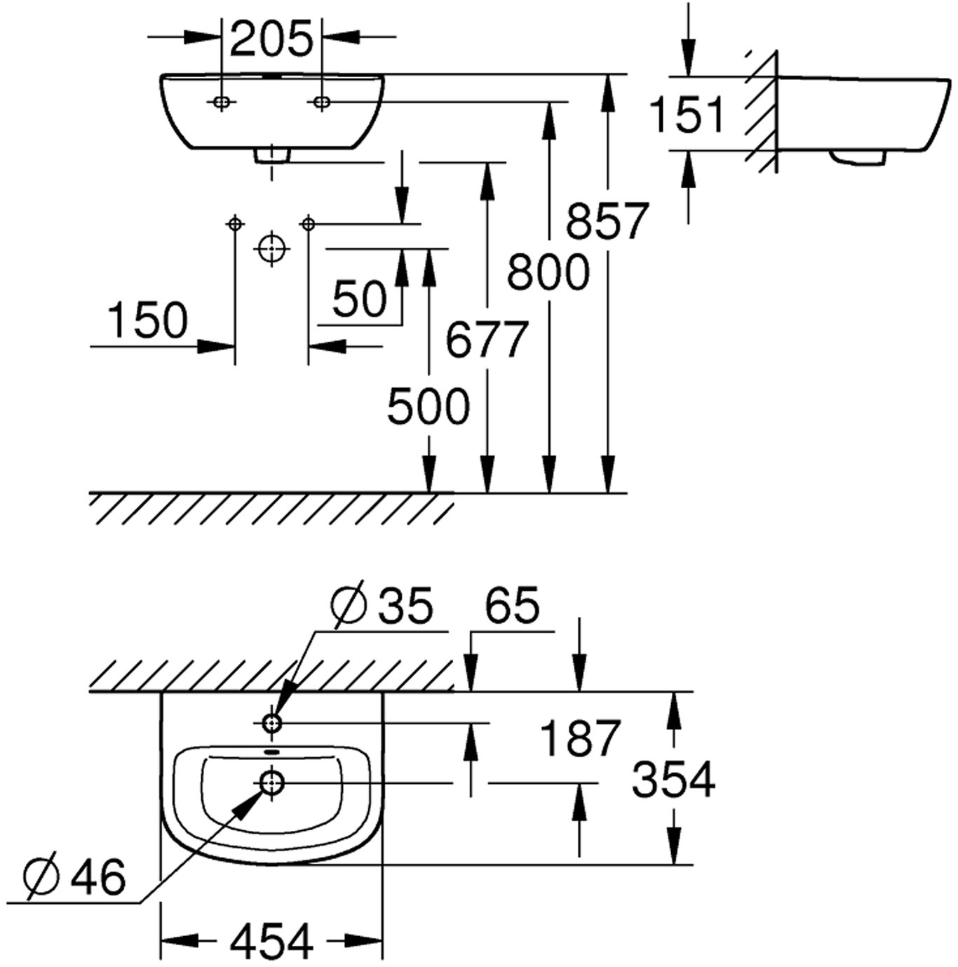 vegghengt1 hulletmed overløp453 x 354 mmsanitærutstyravstand mellom installasjonshull: 205 mmLeverandørens varenummer39424000