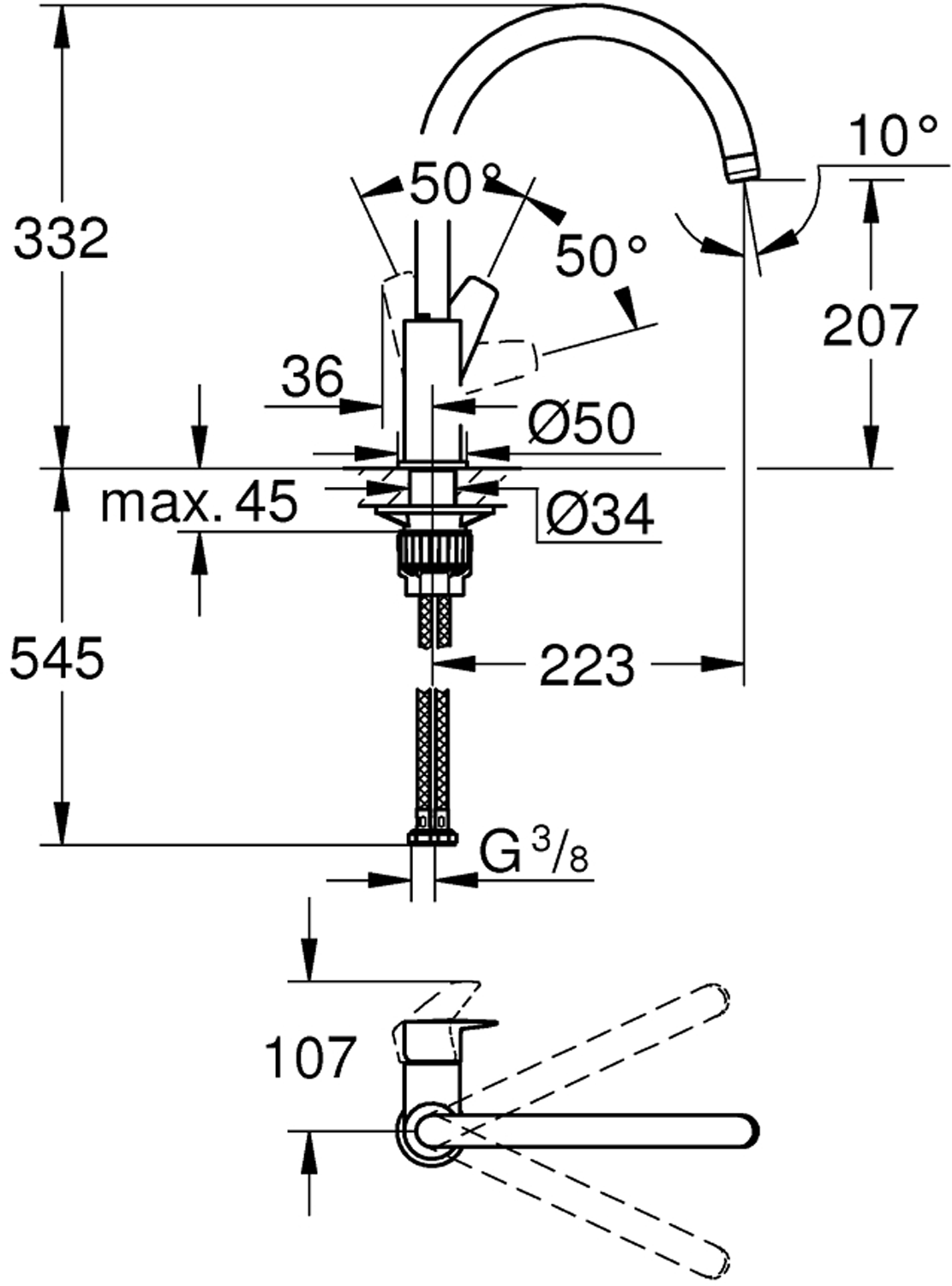 høy tutetthullsmontasjeGROHE StarLight-overflateGROHE Longlife 28 mm keramisk patronGROHE Zero innvendig isolerte vannveier - bly- og nikkelfrimed perlatorsvingbar rørtutsvingradius 360°fleksible tilkoblingsslangerhurtig-montasje-systemGROHE FastFixation Plus kjempe rask og enkel installasjon - trenger ingen verktøyfor montering på en 60 mm bred benkeplate kreves festemateriell 48 384 000Vann- og avløpsinstallasjoner må installeres av rørlegger.