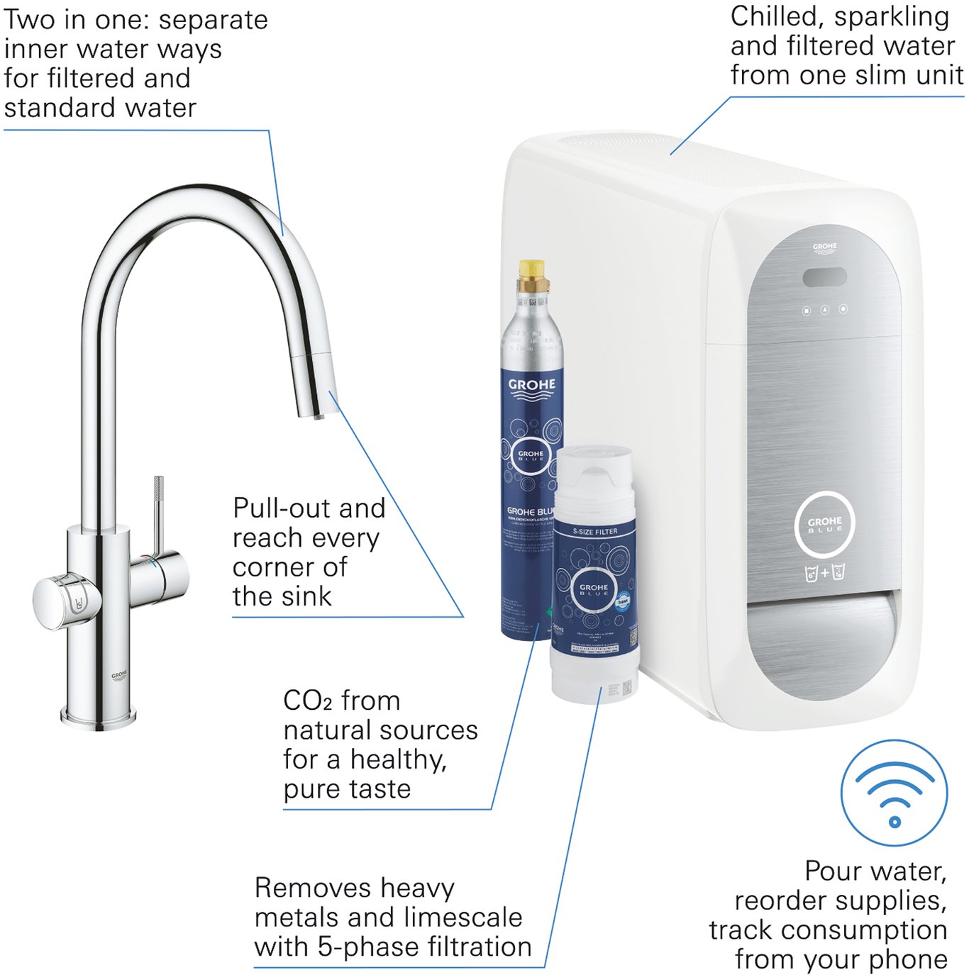 Grohe blue home kjøkkenarmatur m/c-tut oppstartssett krom