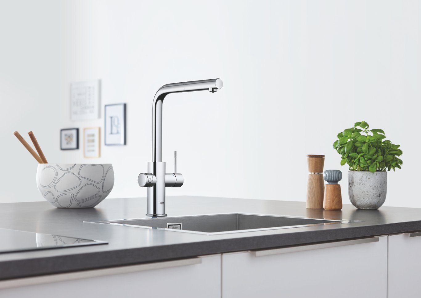 Grohe blue home kjøkkenarmatur m/l-tut oppstartssett krom