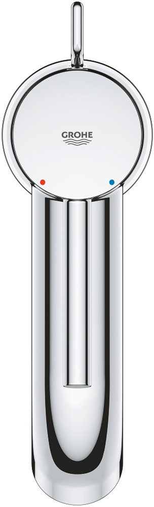 Dette servantbatteriet fra Grohe har en slitesterk overflate i krom, og en tut som vender nedover. Overflaten holder seg pen og er enkel å holde ren takket være Grohe Long-Life Shine®-teknologien.