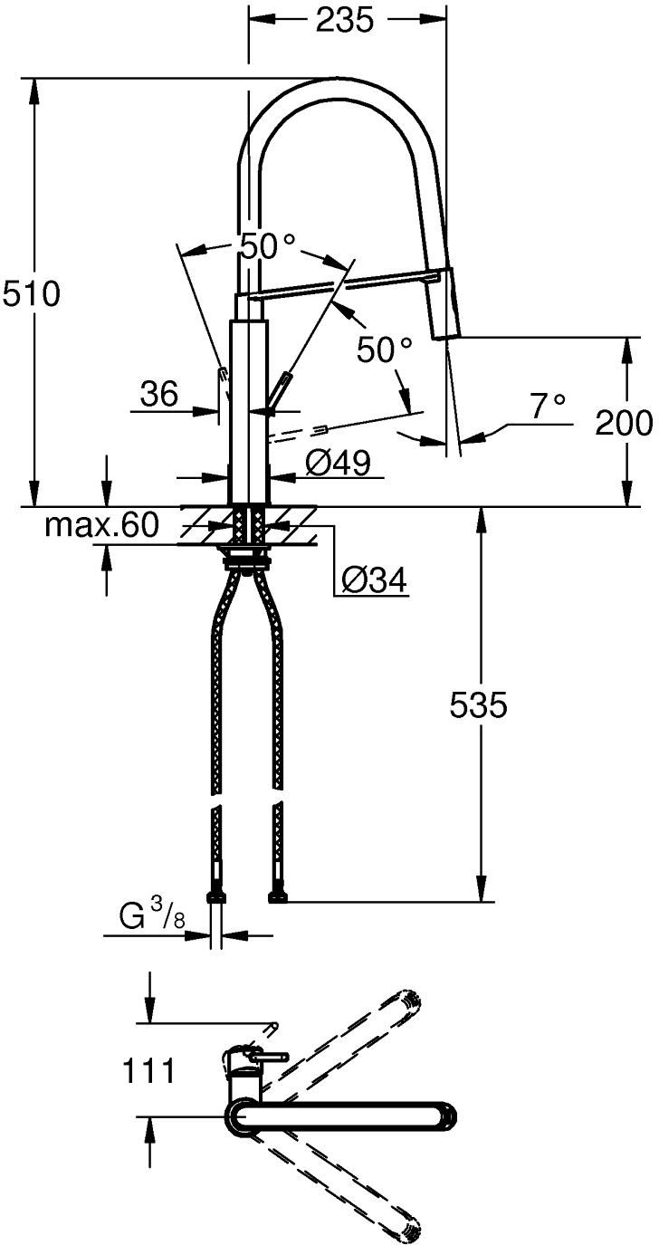 GROHE CONCETTO PROFESSIONAL KJØKKENARMATUR M/UTTREKKBAR TUT, SUPERSTEEL