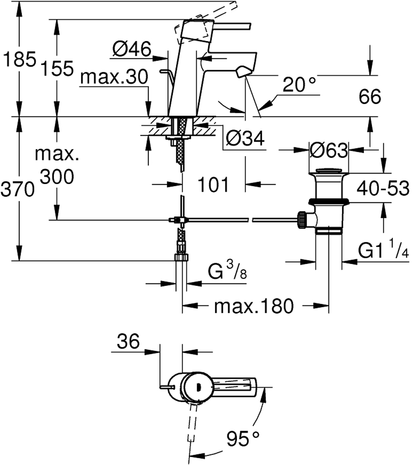 Blandebatteriet Concetto har beskjeden form og er derfor velegnet for mindre vasker. Alt er beskjedent, bortsett fra ytelsen. Med sin skrå form ser kranen alltid ut som den er klar til bruk, og GROHE StarLight kromfinishen sørger for at den skiller seg ut. Kranen har skjult oppløftsventil på baksiden, metallhendel og GROHE SilkMove ES. En trygg og økonomisk armatur. Når hendelen står i midtre posisjon, kommer det bare kaldt vann fra kranen. GROHE watersaving sørger for at du bruker mindre vann. Og med GROHE QuickFix går monteringen som en lek.