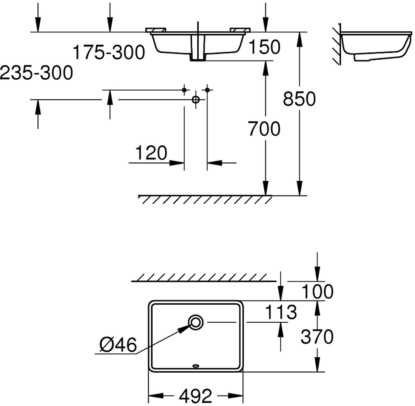 Grohe cube nedfelt servant 50x37 cm alpinhvit