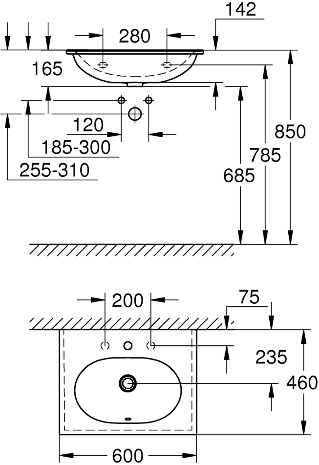 vegghengt1 hull stanset, 2 hull pre-stansetmed overløp på motsatt side til kranenpasser til servantskap600 x 460 mmsanitærutstyrPureGuard anti-stick belegg og anitbakteriell overflateLeverandørens varenummer3956800H