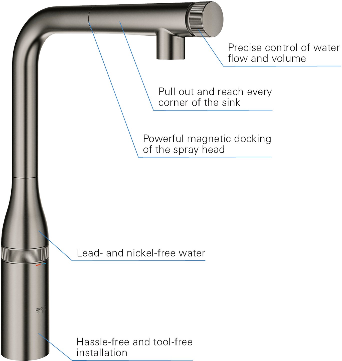 GROHE ESSENCE SMARTCONTROL KJØKKENARMATUR BØRSTET HARD GRAPHITE