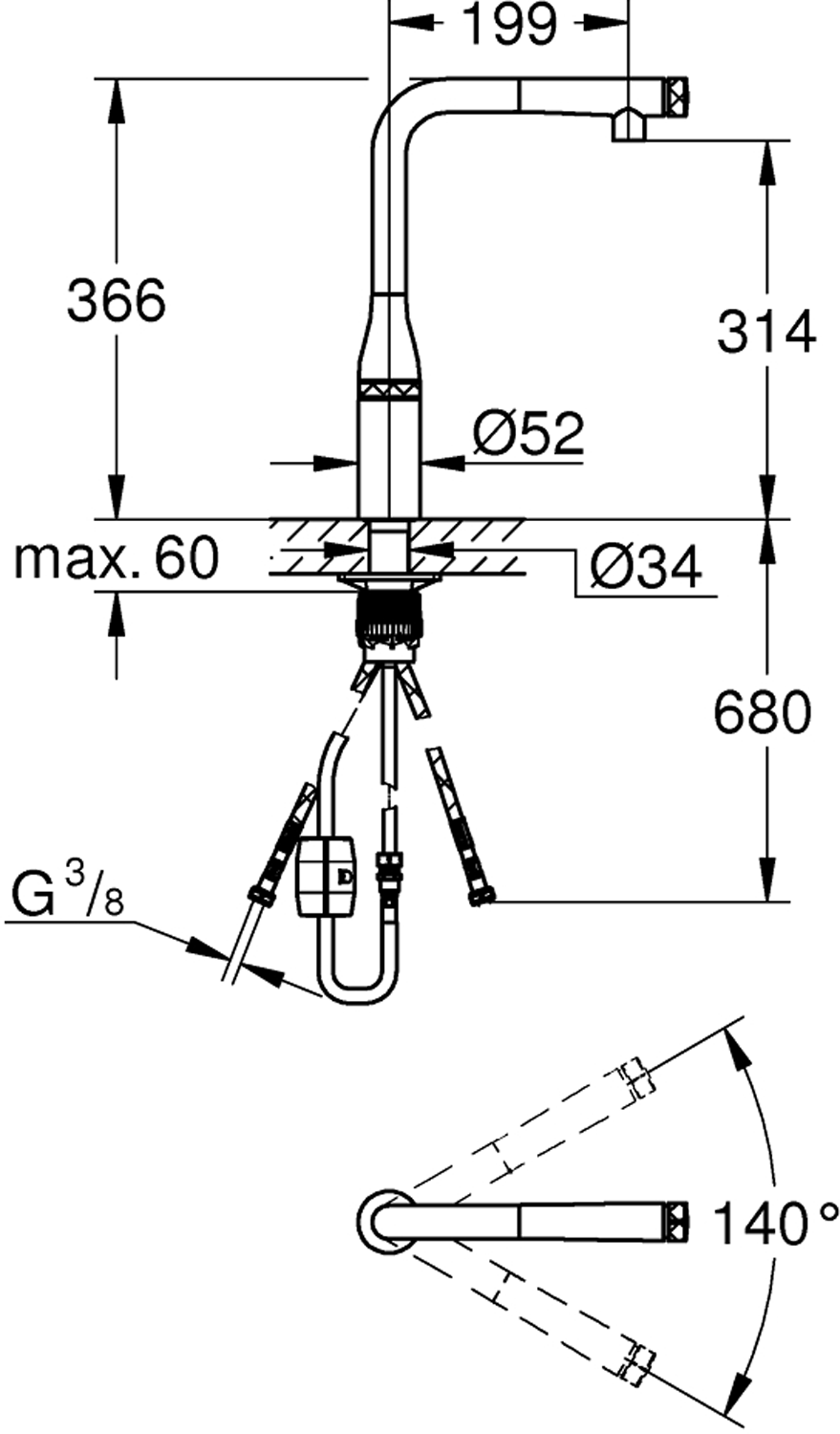 etthullsmontasjeGROHE StarLight-overflateuttrekkbar spray med perlatormetall dusjtutGROHE Magnetisk docking garanterer enkel og jevn tilbaketrekning av sprayhodet tilbake til startposisjonenGROHE SmartControl smart AV/PÅ knapp, vri på knappen for å justere vannstrålen fra en vannbesparende stråle til en kraftig jettemperaturjustering ved å vri blandeventilen på kroppensvingbar rørtutsvingradius 140°med tilbakeslagsventilfleksible tilkoblingsslangerGROHE FastFixation Plus kjempe rask og enkel installasjon - trenger ingen verktøyGROHE Zero innvendig isolerte vannveier - bly- og nikkelfriVann- og avløpsinstallasjoner må installeres av rørlegger.