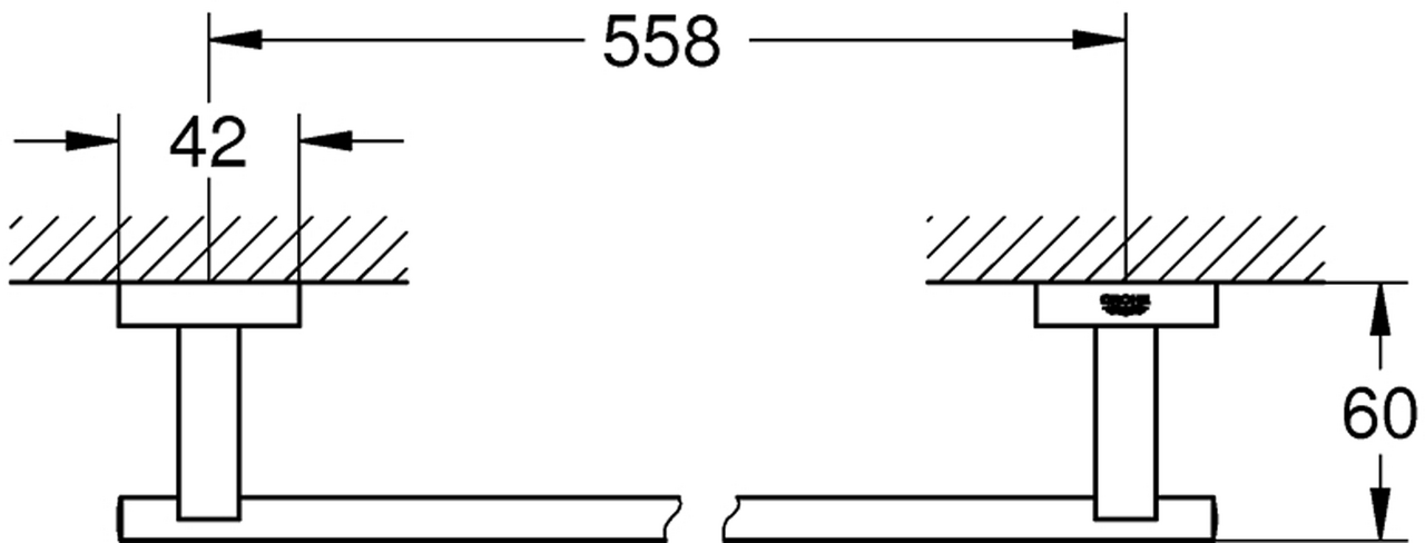 materiale: metall600 mm (funksjonell lengde 558 mm)dekket festeskruerGROHE Long-Life-overflateLeverandørens varenummer40509DC1