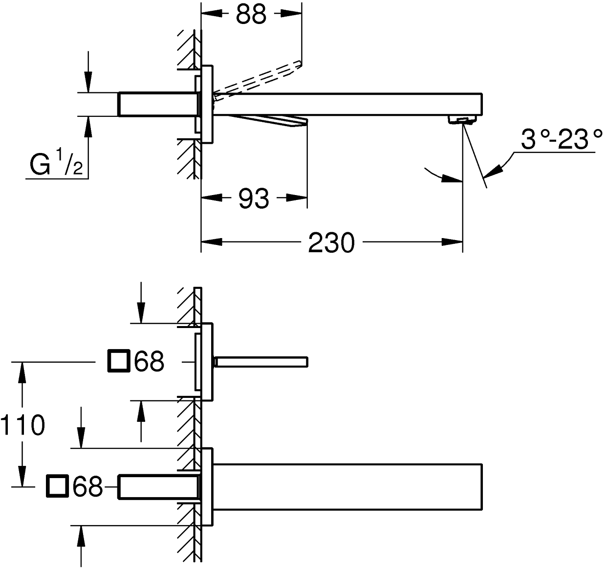 Grohe eurocube joy 2-hulls vegghengt servantbatteri