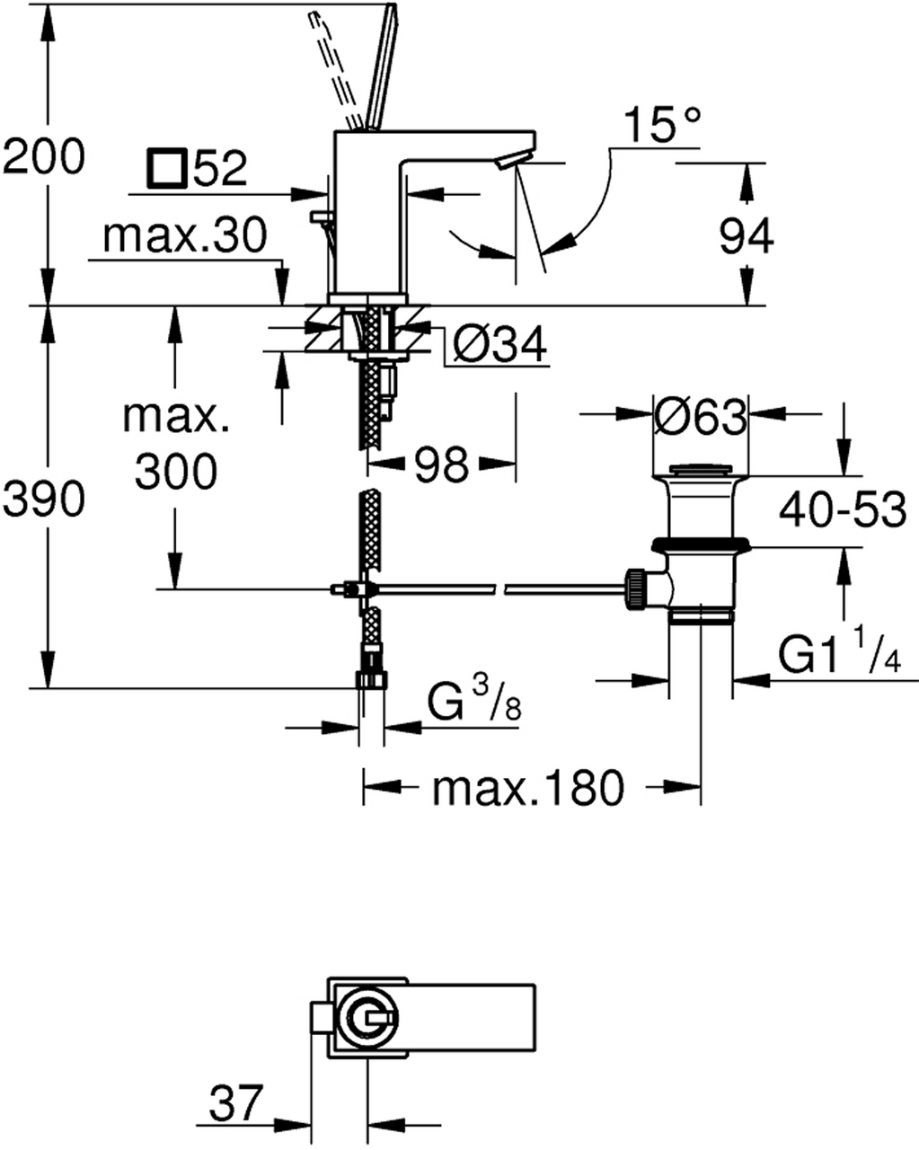 Grohe eurocube joy s servantbatteri m/oppløft krom