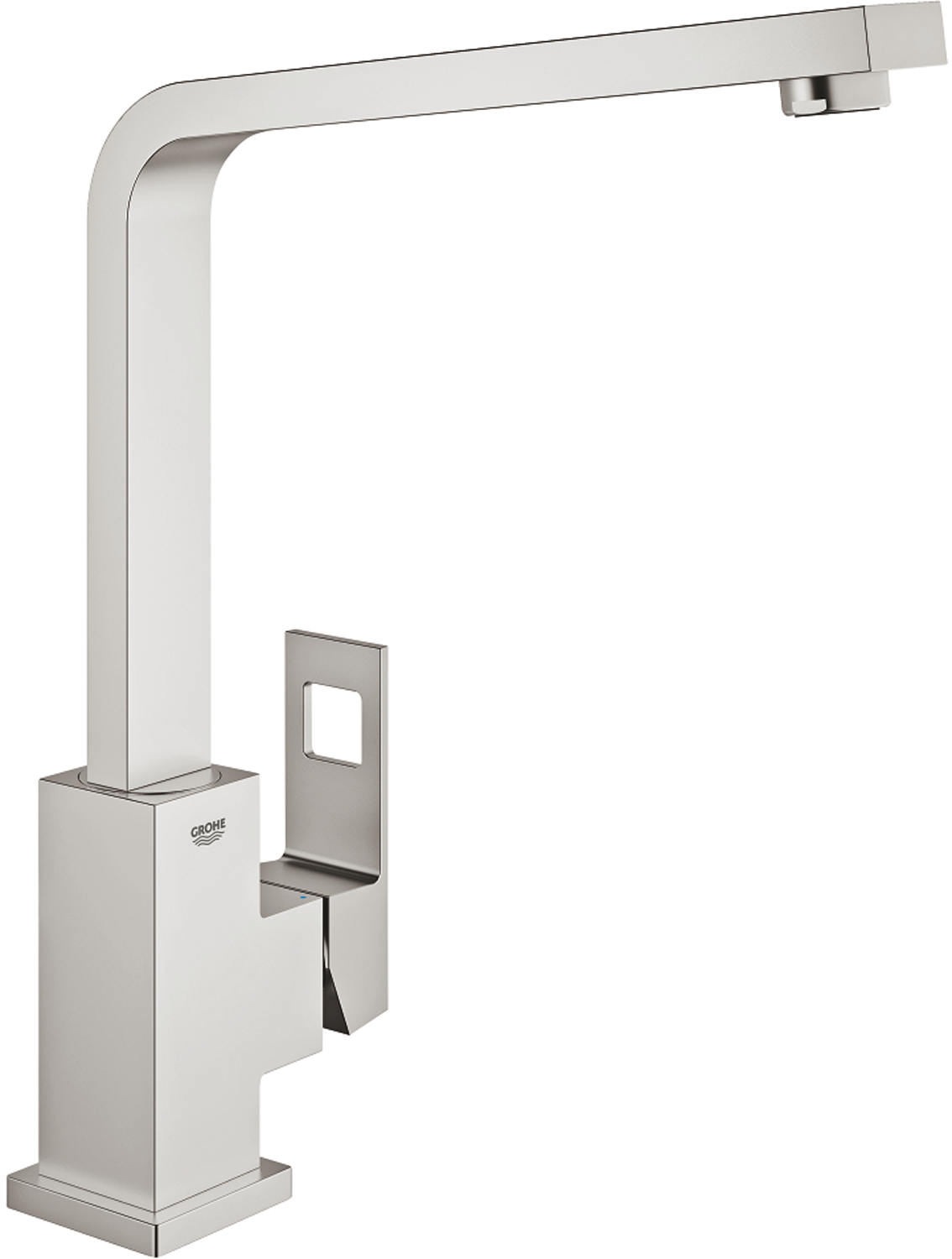 Kjøkkenkranen GROHE Eurocube er inspirert av de tydelige og rene linjene i kuber, og den blir et designmidtpunkt i rommet. Den subtile estetikken gjenspeiles i de praktiske funksjonene som sørger for at det blir enklere å utføre oppgavene på kjøkkenet. Kranen har en høy tut med svingradius på 360°, slik at du får maksimal fleksibilitet. Dette er perfekt hvis du har to vasker og når du skal fylle store kjeler. På innsiden finner du GROHE SilkMove patronteknologi som gjør det veldig enkelt å justere vannmengde og temperatur. Easy Installation System gjør det enkelt å montere kranen. GROHE SuperSteel-finishen er en matt overflate som ser ut som rustfritt stål. Den er ripesikker og har et sofistikert utseende som varer i mange år.