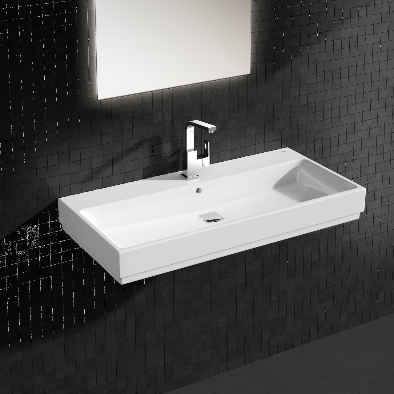 Med sin slående kubeform blir denne GROHE Eurocube baderomskranen midtpunktet på ethvert baderom. Det imponerende, geometriske utseendet kompletteres med en rekke like fantastiske funksjoner. Den høye tuten med 90° svingradius gjør det enkelt å vaske håret i servanten. Takket være GROHE SilkMove-teknologien kan du enkelt justere vannmengde og temperatur med en hendel med veldig jevne bevegelser. Det patenterte watersaving-systemet gjør at du får en imponerende vannstråle selv om forbruket automatisk reduseres med inntil 50 %. De fleksible SpeedClean silikondysene sørger for at kalkbelegg på tuten ikke blir noe problem. Den har skinnende blank og ripesikker GROHE StarLight kromfinish, med en glans som varer i mange år. GROHE QuickFix Plus-systemet gjør at installasjonen går som en lek. En perfekt oppgradering!