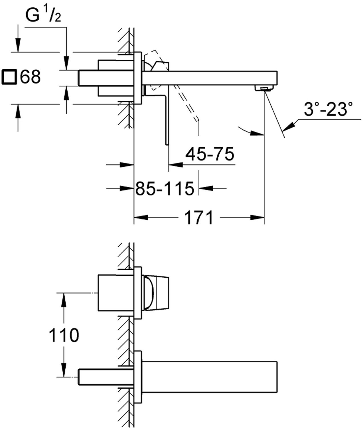 - Senteravstand: 110 mm