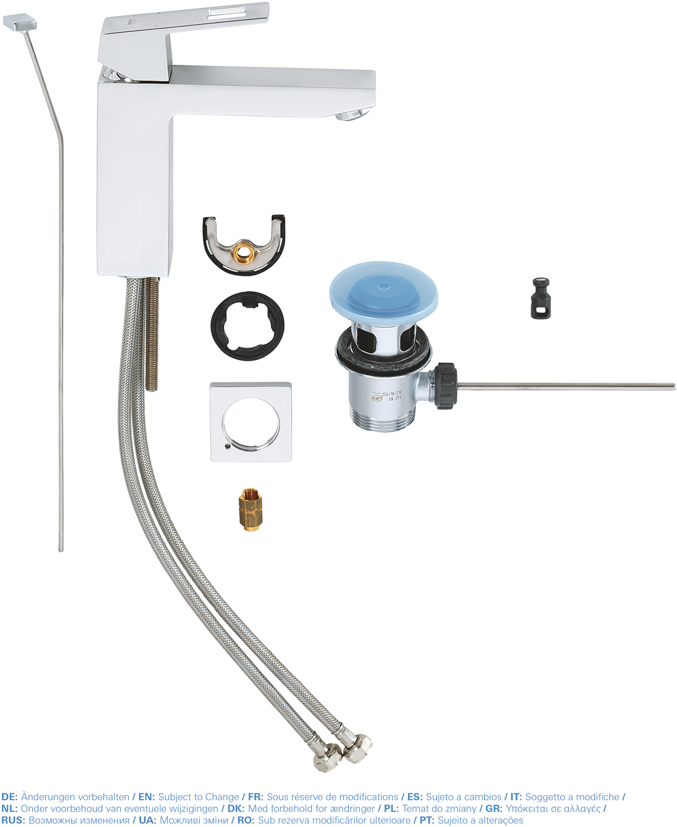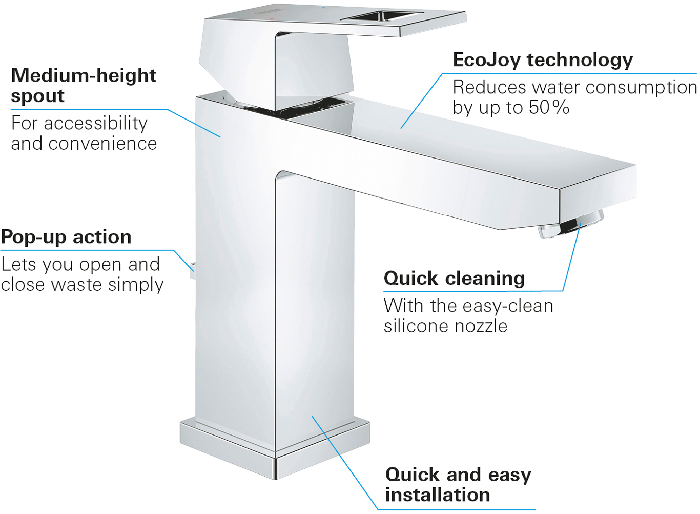 GROHE Eurocube baderomskran – elegant vannbesparende blandebatteri med oppløftsventil og avløpsgarnityr og middels høy tut