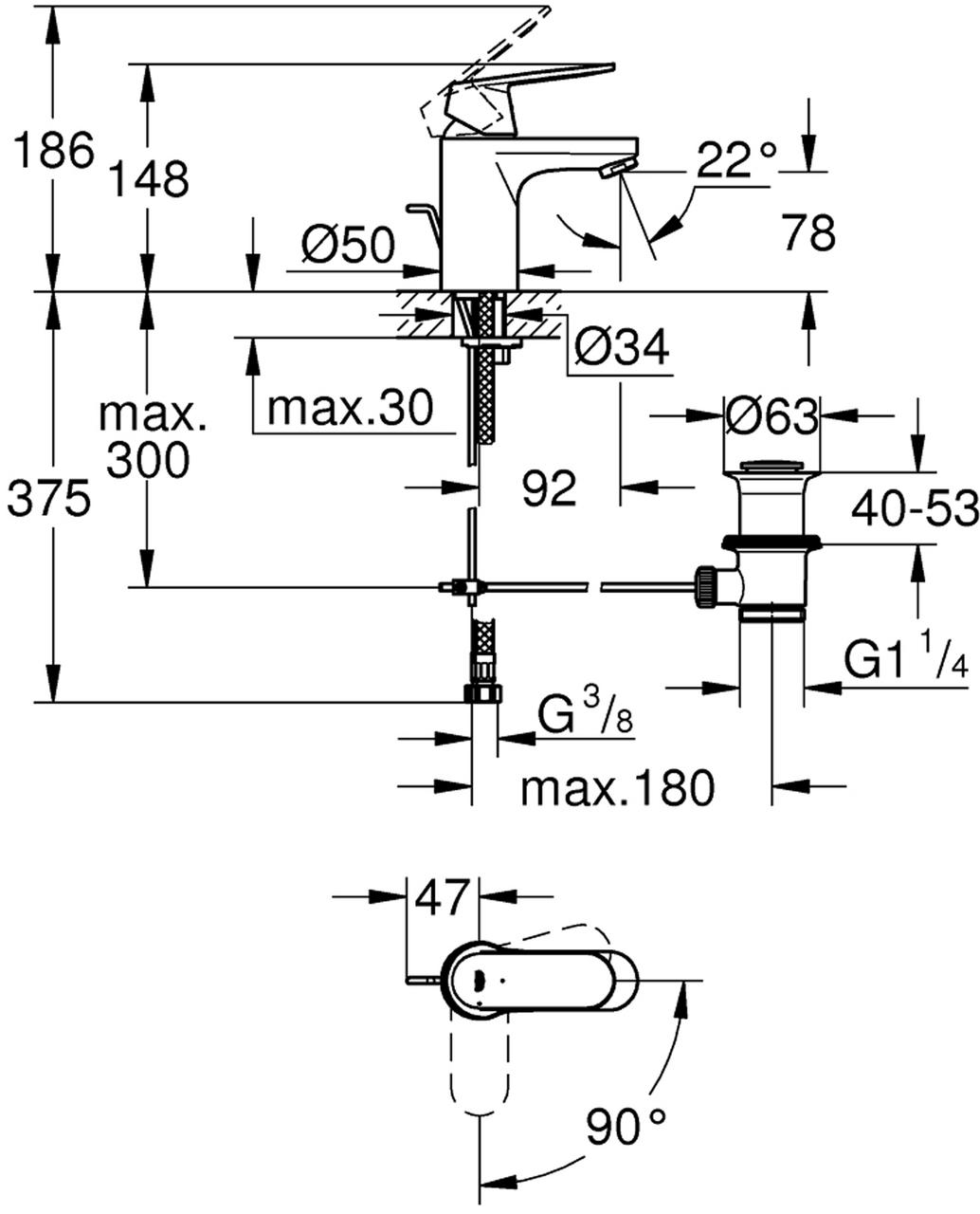 etthullsmontasjemetallhendelGROHE SilkMove Energy Saving Kaldstart35 mm keramisk patron med energibesparende funksjon via kaldstartvariable justerbar volumbegrensertemperaturbegrenserGROHE Long-Life overflateGROHE Water Saving-teknologi for mindre vannforbrukmaximum flow rate (at 3 bar): 5 l/minGROHE FastFixation hurtiginnstalleringoppløft med avløpsgarnityr 1 1/4"fleksible tilkoblingsslangermin. trykk 1.0 barVann- og avløpsinstallasjoner må installeres av rørlegger.
