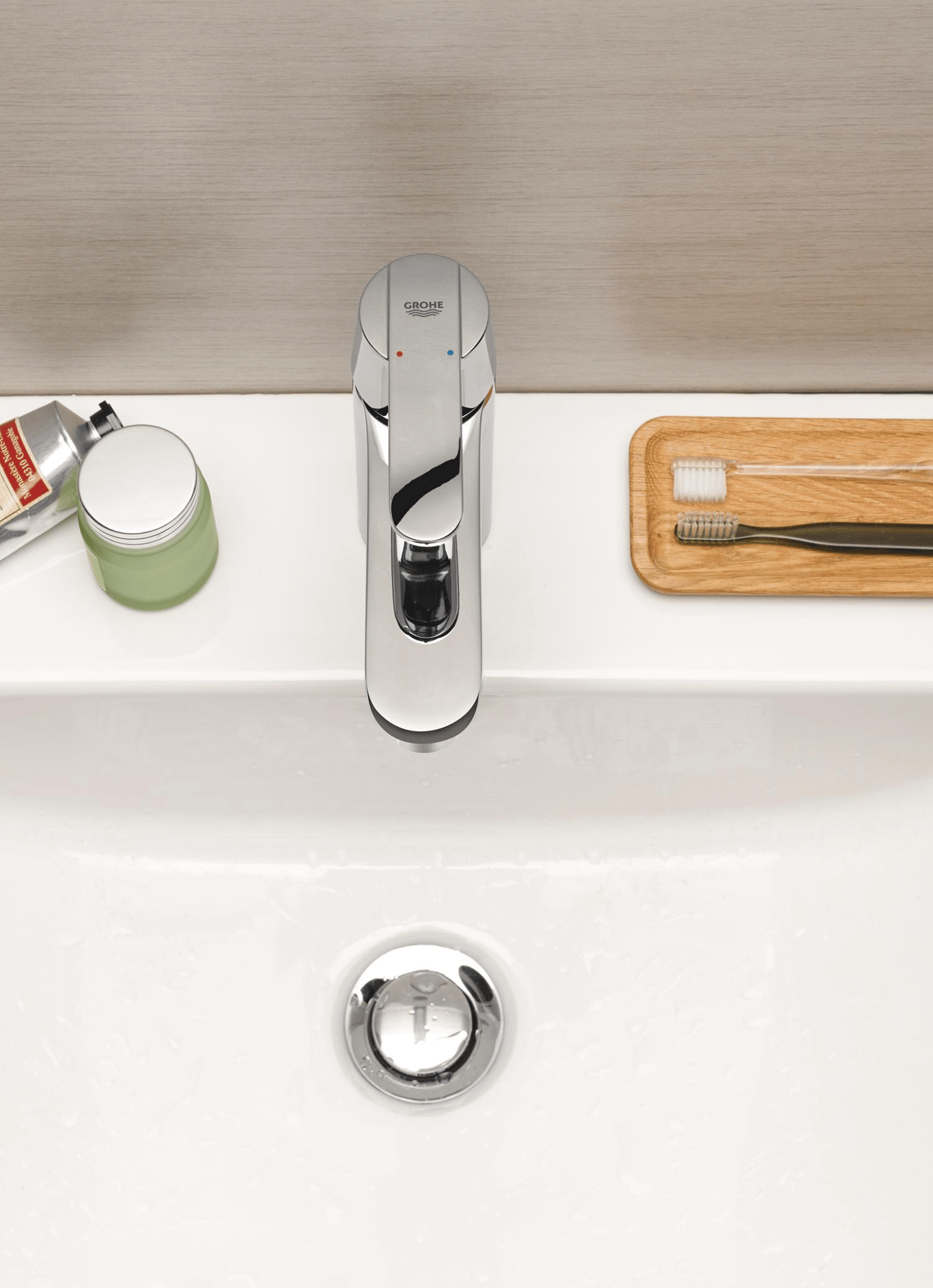 - GROHE watersaving® med vannsparingsfunksjon for redusert forbruk