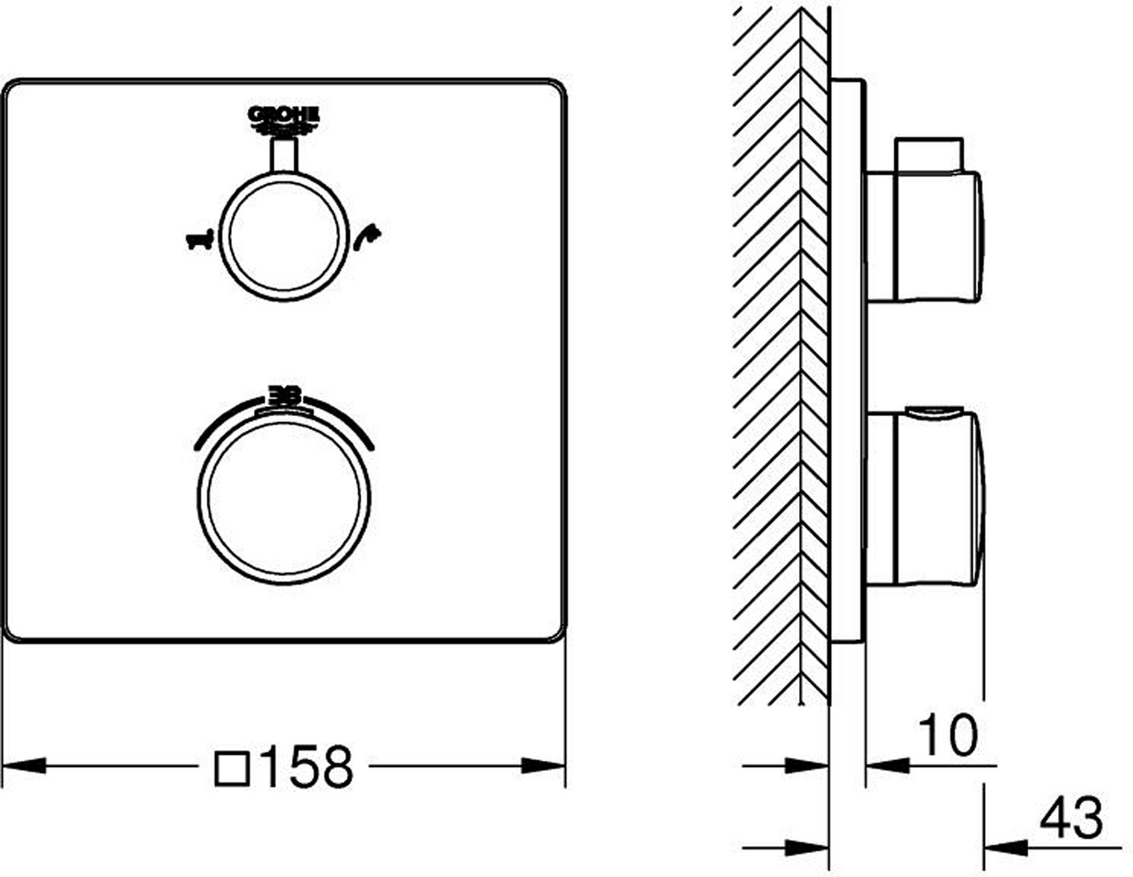 GROHE GROHTHERM BADEKARTERMOSTAT FIRKANTET FOR INNBYGGING M/2 UTLØP KROM