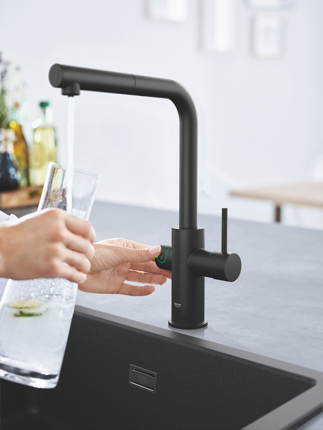 Grohe k700u kjøkkenkum 61x46 cm sort kvartskompositt m/avløpsgarnityr
