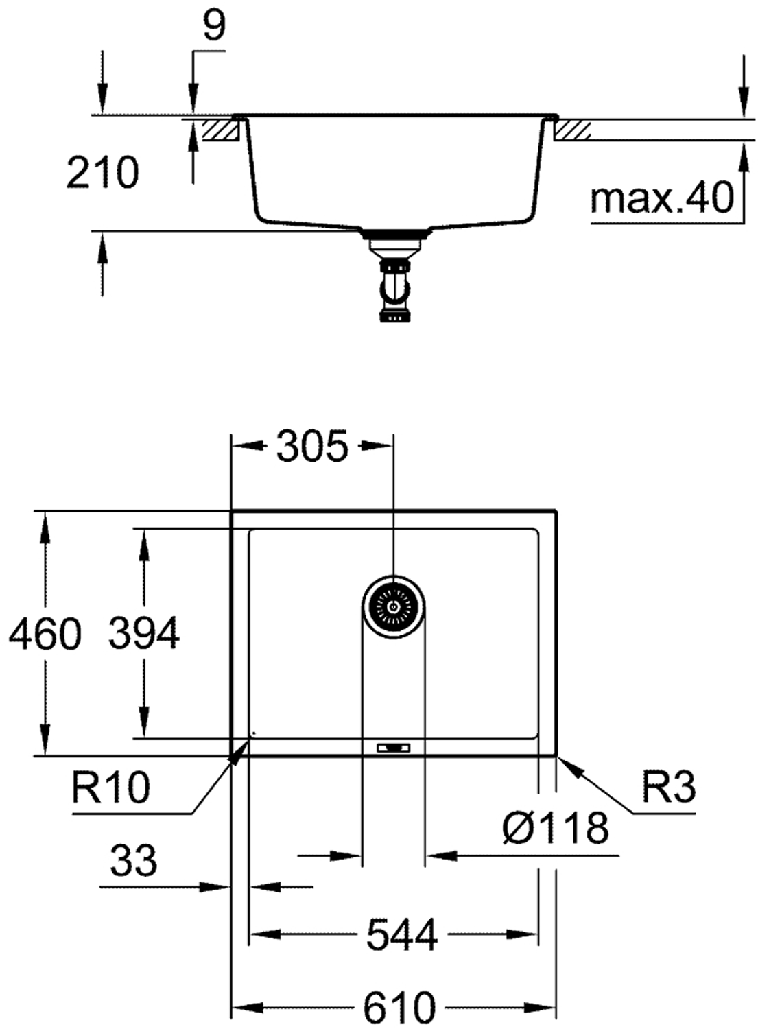 modell: K700U 70-C 61/45.7 1.0monteringstype: standard innebygd eller underlimtmateriale: kvarts komposittGROHE Whispermin. skapstørrelse: 700 mmdimensjoner: 610 x 460 mm1 kum: 544 x 394 x 205 mmytre radius: R3, indre kum radius: R10GROHE FastFixation installasjonssystemutskjæring: 543 x 393 mmavløp: Ø 3.5"/90 mm stålsilmulighet for: avløpsgarnityr med trykkontroll (40 986 SD0)inkluderer tilbehør: avløpsgarnityr, stålsil, monteringssettantall fester inkludert (topplimt): 6antall fester inkludert (underlimt): 6Vann- og avløpsinstallasjoner må installeres av rørlegger.