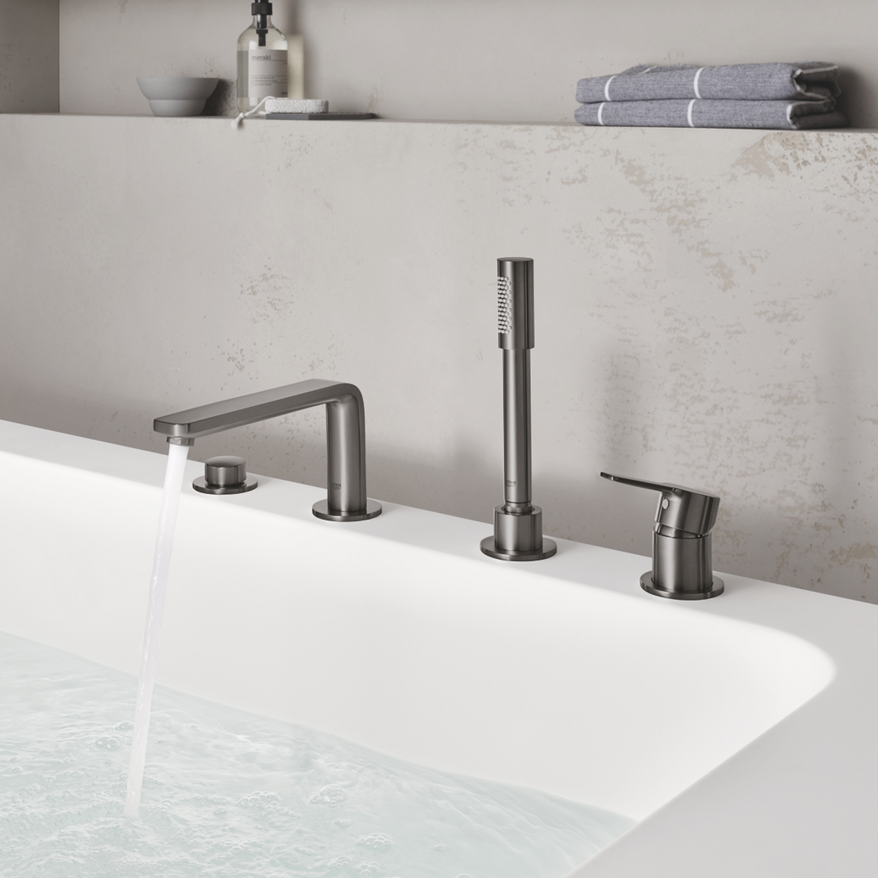 GROHE LINEARE 4-HULLS BADEKARBATTERI BØRSTET HARD GRAFITT