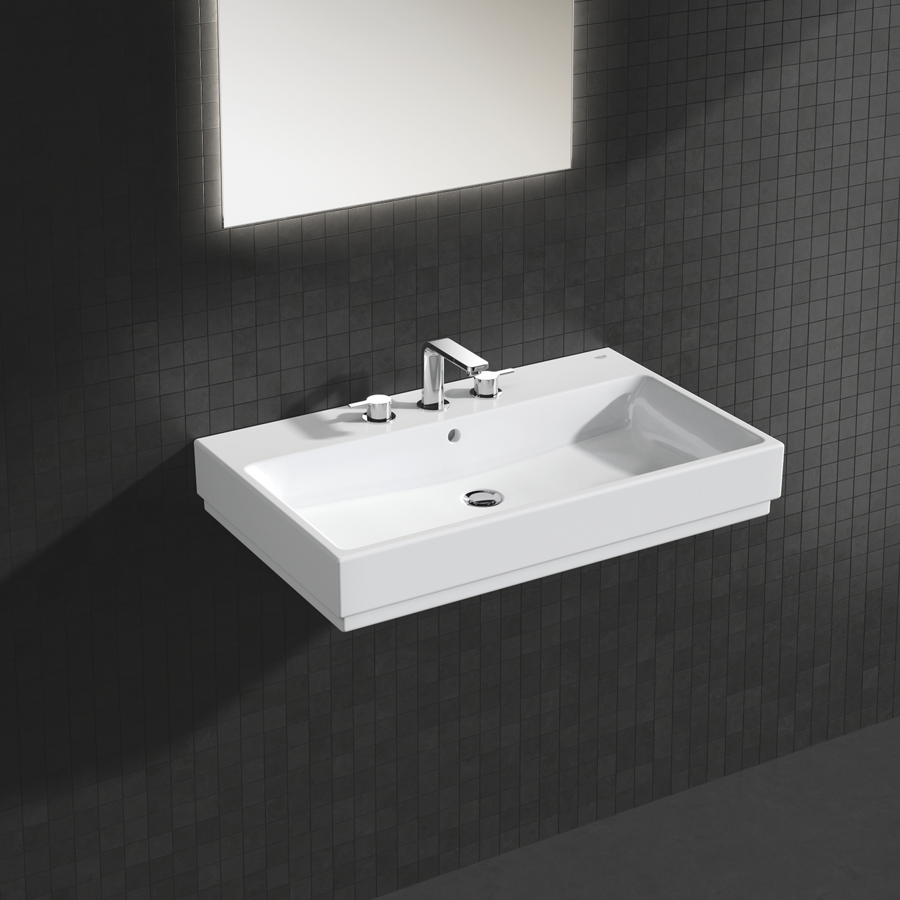 Lineare servantarmatur fra Grohe har en slitesterk overflate som er enkel å rengjøre. Det stilrene designet passer godt inn på ethvert moderne baderom.