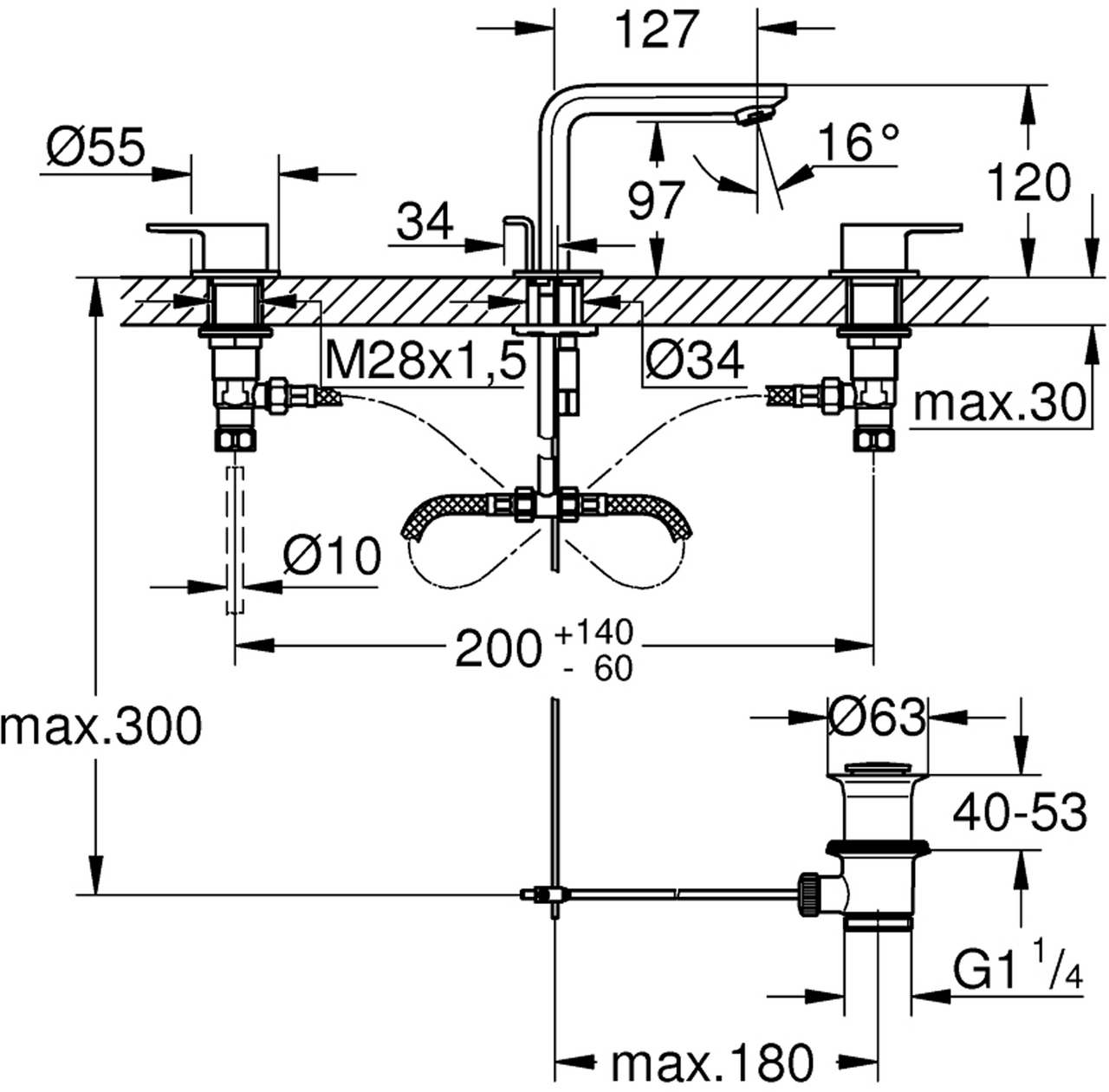 GROHE LINEARE M 3-HULLS SERVANTBATTERI KROM