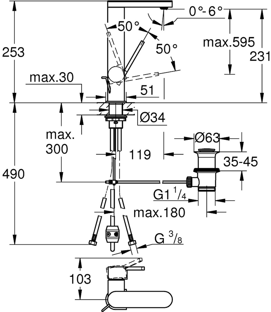 etthullsmontasjemetallhendelGROHE SilkMove 28 mm keramisk patronmed temperaturbegrenserGROHE Long-Life-overflateGROHE Water Saving-teknologi for mindre vannforbrukmaximum flow rate (at 3 bar): 5 l/minSpeedClean mousseurGROHE AquaGuide justerbar perlatorrask installasjonuttrekkbar tutGROHE EasyDock garanterer enkel inntrekking og glatt docking tilbake til utgangsposisjonenoppløft med avløpsgarnityr 1 1/4"fleksible tilkoblingsslangerVann- og avløpsinstallasjoner må installeres av rørlegger.