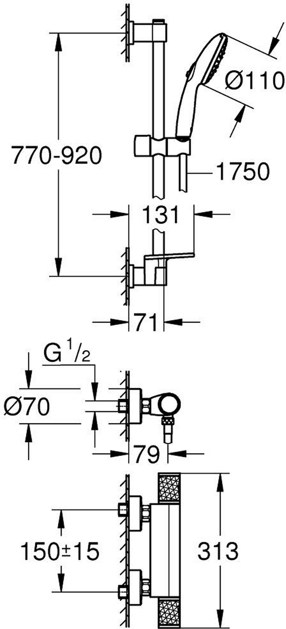 GROHE PRECISION FEEL DUSJTERMOSTAT M/3-SPRAY DUSJSETT 900 MM KROM