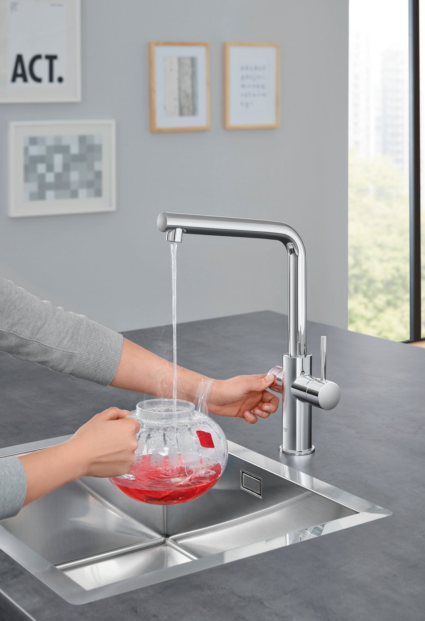 Med Grohes Red Duo kjøkkenarmatur får du kokende vann rett i kjøkkenkranen, perfekt til både te, kaffe og matlaging.