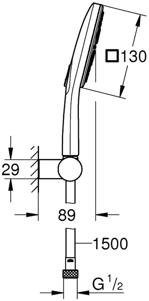 består av:hånddusj Rainshower SmartActive 130 Cube (26 582)maximum flow rate (at 3 bar): 8.5 l/minsprayplate månehvitveggdusjholder, innstilbar (27 055)Silverflex dusjslange 1500 mm (28 364)GROHE Water Saving-teknologi for mindre vannforbrukGROHE DreamSpray perfekt strålemønsterGROHE Long-Life-overflateSpeedClean antikalksystemIndre WaterGuide for lengre levetidTwistStop forhindrer at dusjslangen vrir segvelegnet til gjennomstrømsvarmerVann- og avløpsinstallasjoner må installeres av rørlegger.