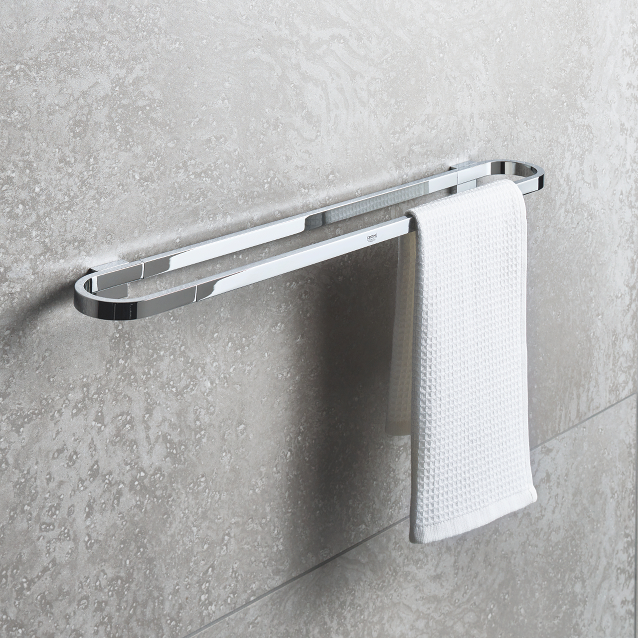 Denne håndklestangen fra Grohe har en slitesterk overflate som er enkel å holde ren.