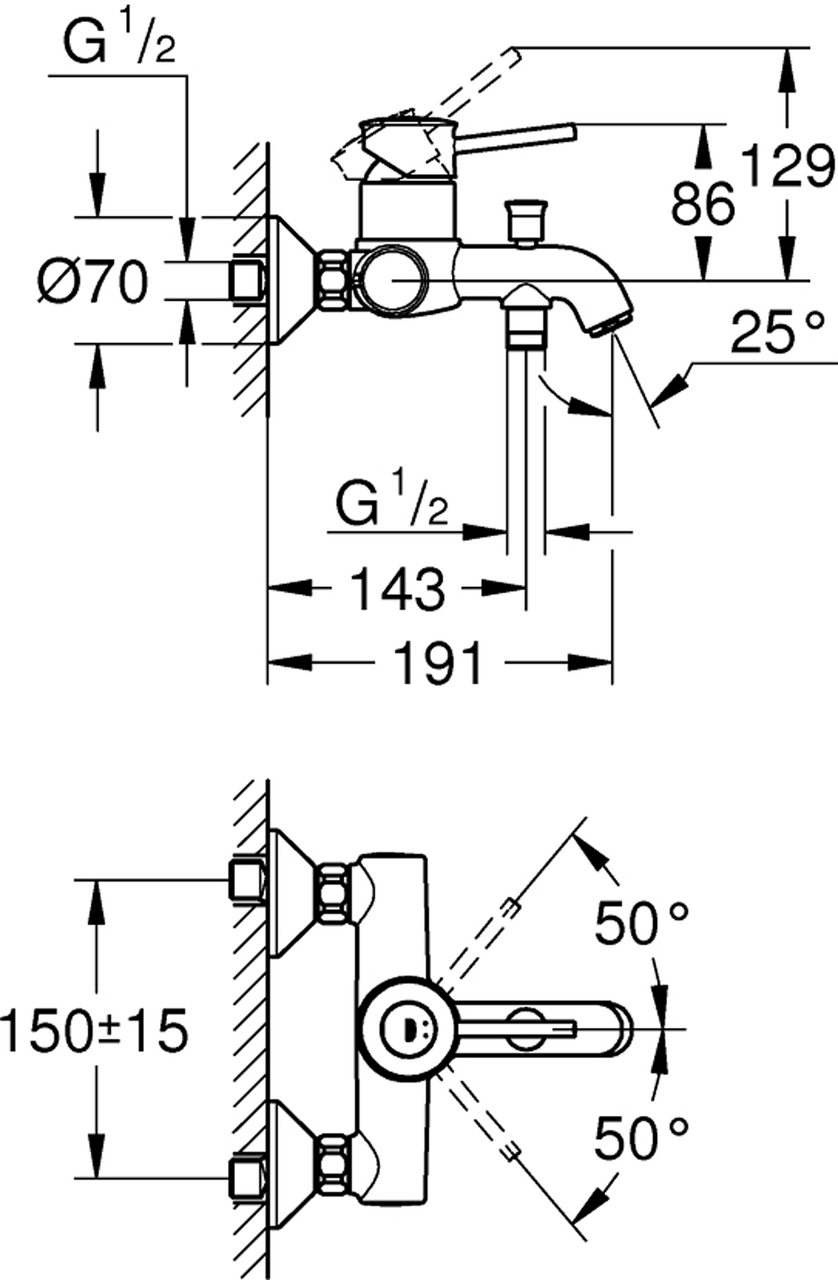 veggmontasjemetallhendelGROHE Long-Life 46 mm keramisk patronGROHE Long-Life overflatevariable justerbar volumbegrenserautomatisk omstilling: kar/dusjmed perlatorintegrert tilbakeslagsventilS-tilslutningerveggrosett av metallmed tilbakeslagsventilVann- og avløpsinstallasjoner må installeres av rørlegger.