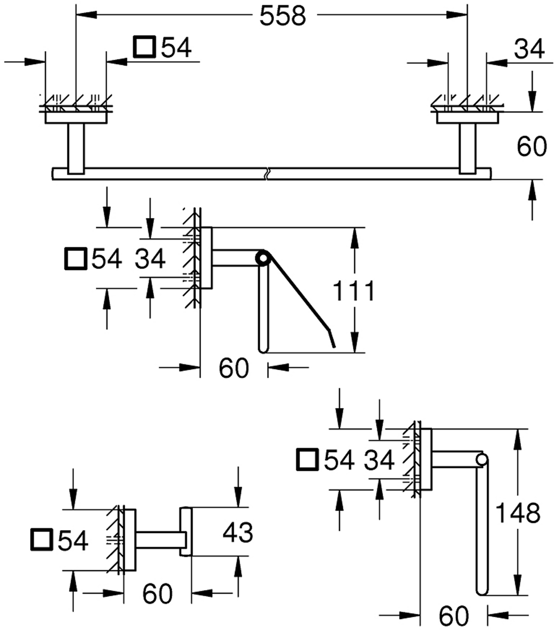 Dette settet fra Grohe kommer med et tidløst design og består av en håndklekrok, håndklering, toalettpapirholder og en håndklestang som passer inn på ethvert baderom.
