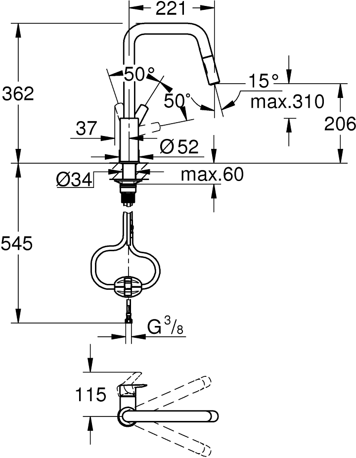 GROHE START KJØKKENARMATUR M/UTTREKKBAR TUT SORT