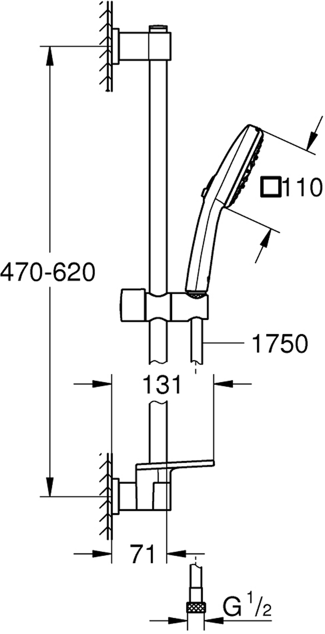 GROHE VITALIO COMFORT 110 III DUSJSETT 600 7,4L M/HYLLE KROM