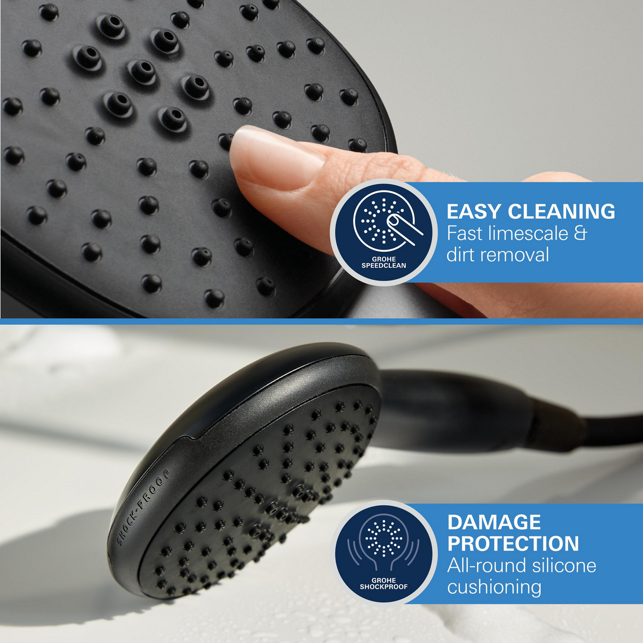 - ShockProof – støtsikker silikonring på hånddusjen