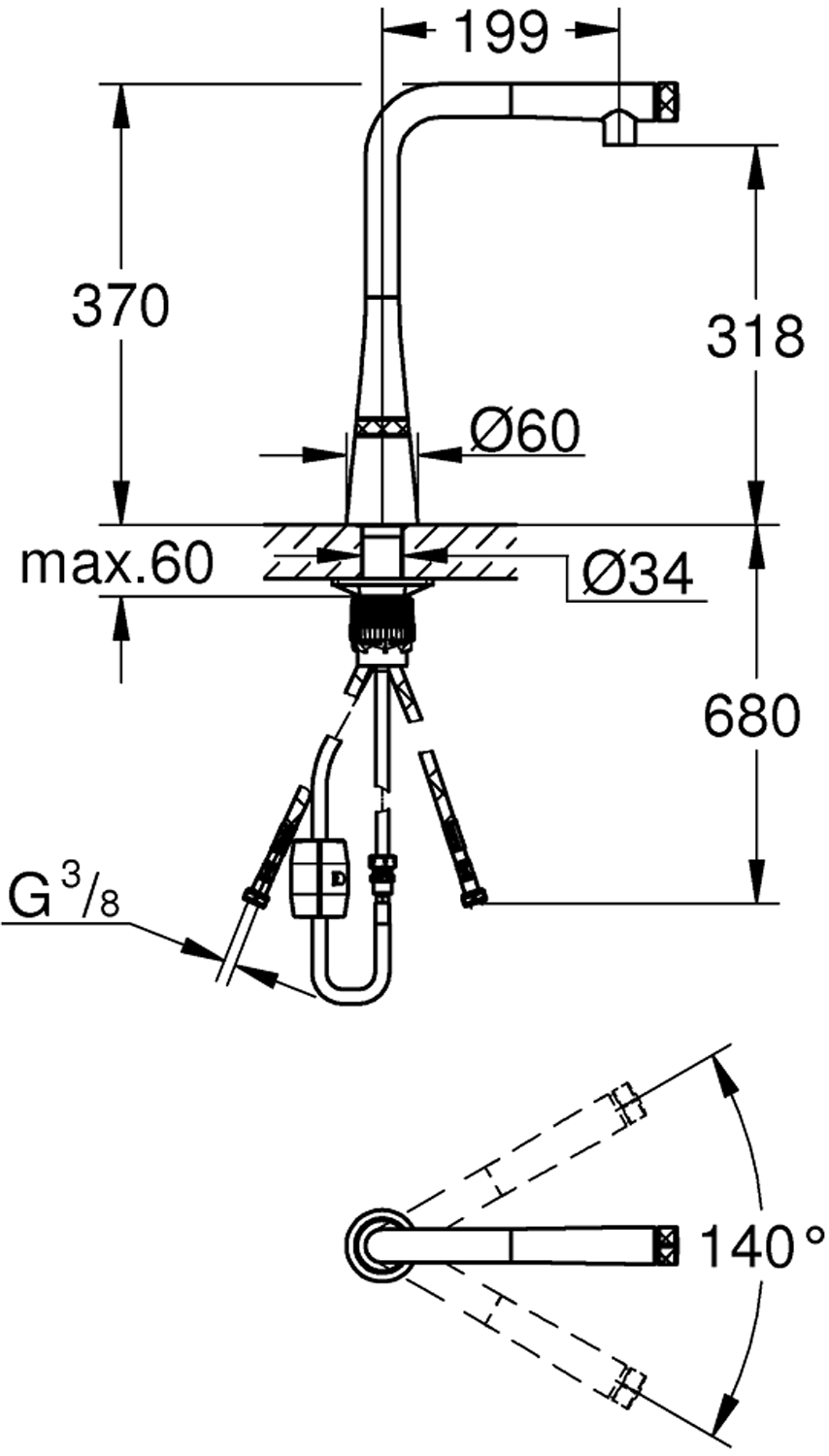 etthullsmontasjeGROHE StarLight krom overflateuttrekkbar spray med perlatormetall dusjtutGROHE Magnetisk docking garanterer enkel og jevn tilbaketrekning av sprayhodet tilbake til startposisjonenGROHE SmartControl smart AV/PÅ knapp, vri på knappen for å justere vannstrålen fra en vannbesparende stråle til en kraftig jettemperaturjustering ved å vri blandeventilen på kroppensvingbar rørtutsvingradius 140°med tilbakeslagsventilfleksible tilkoblingsslangerGROHE FastFixation Plus kjempe rask og enkel installasjon - trenger ingen verktøyGROHE Zero innvendig isolerte vannveier - bly- og nikkelfriVann- og avløpsinstallasjoner må installeres av rørlegger.