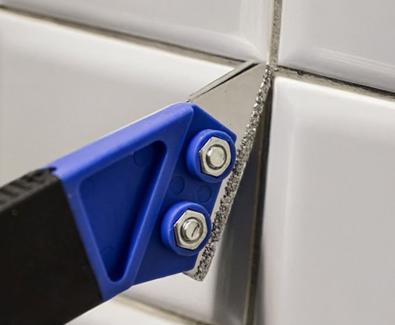 1. Stygge fuger som har begynt å smuldre og løsne, fjernes ved å benytte en fugekrasse. Skrap bort det som er porøst og som løsner lett.