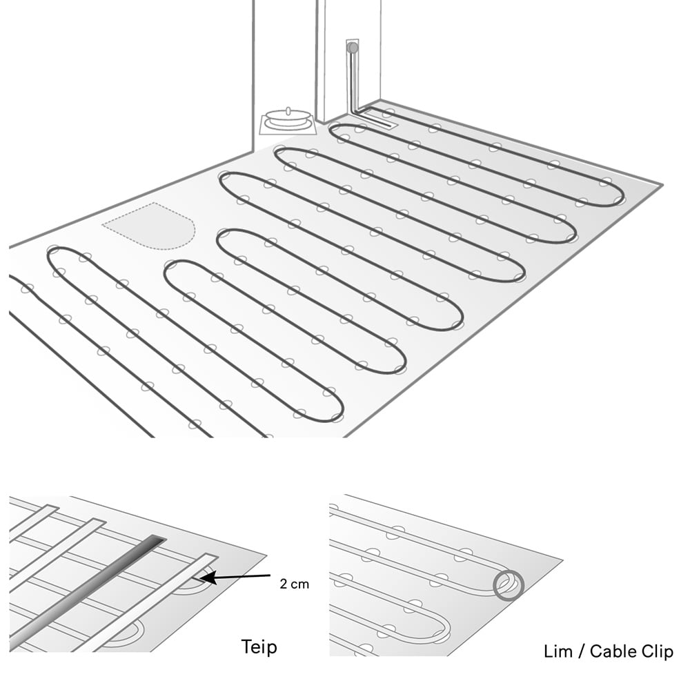 5. Festing av varmekabel skal gjøres med c/c 20 cm.