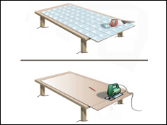 Press: Legg press på hele platen. Et alternativ til å bruke kroppsvekt og presse platen mot veggen er å bruke en bit av en planke med et tøystykke mellom planken og platen – og slå forsiktig på planken med en hammer over hele platens bredde. Fjern plasten på forsiden av platen.