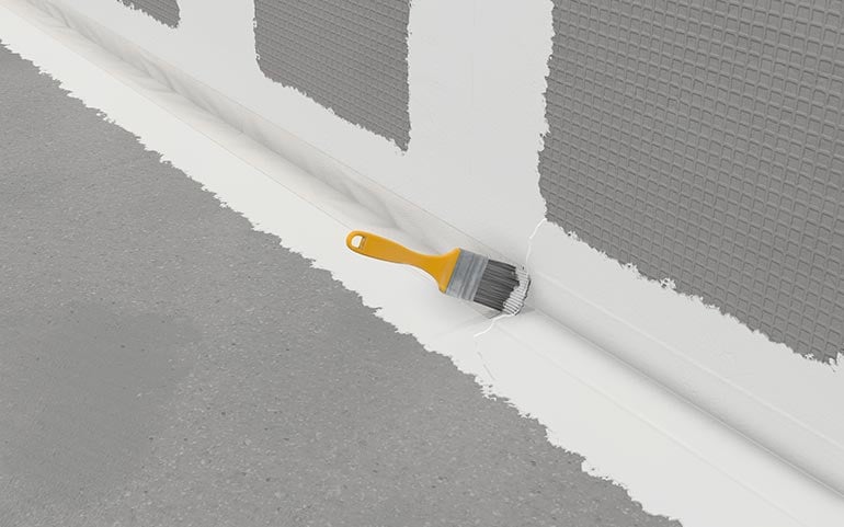 Før man begynner med tetting av overgang til gulv/vegg, er det viktig at underlaget er rengjort og støvfritt. Smøremembranen som skal benyttes krever en arbeidstemperatur på 10-25 grader. Benytt egne hjørnemansjetter for tetting av innvendige og utvendige hjørner.