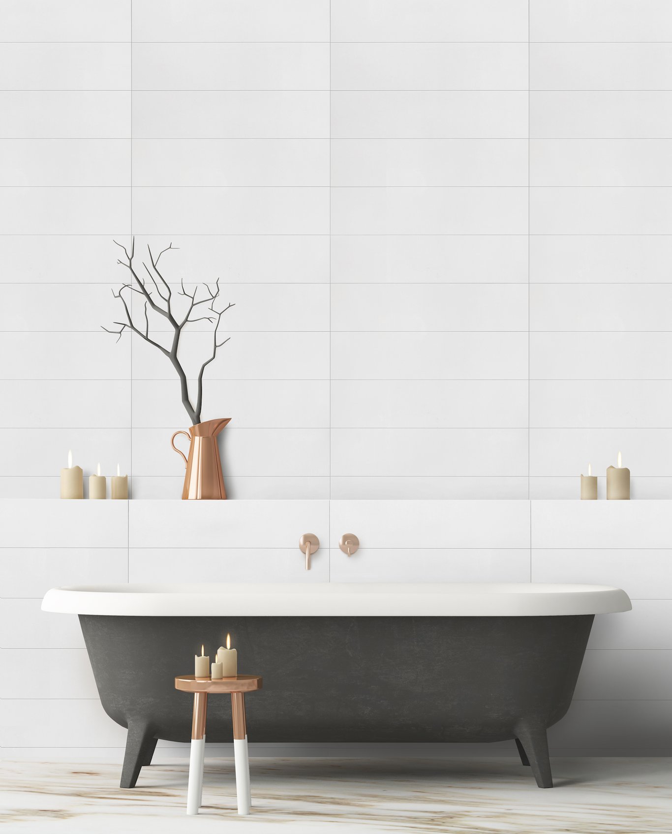 Dette baderomspanelet fra BerryAlloc har et tradisjonelt flisemønster i hvit glossy overflate med grå fug. Det er enkelt å montere, og gir en fin og moderne finish.