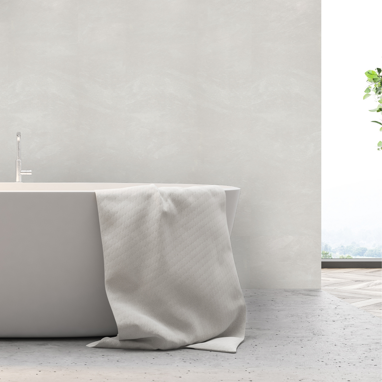 Dette baderomspanelet fra BerryAlloc har en slett overflate som gir en fin og moderne finish.