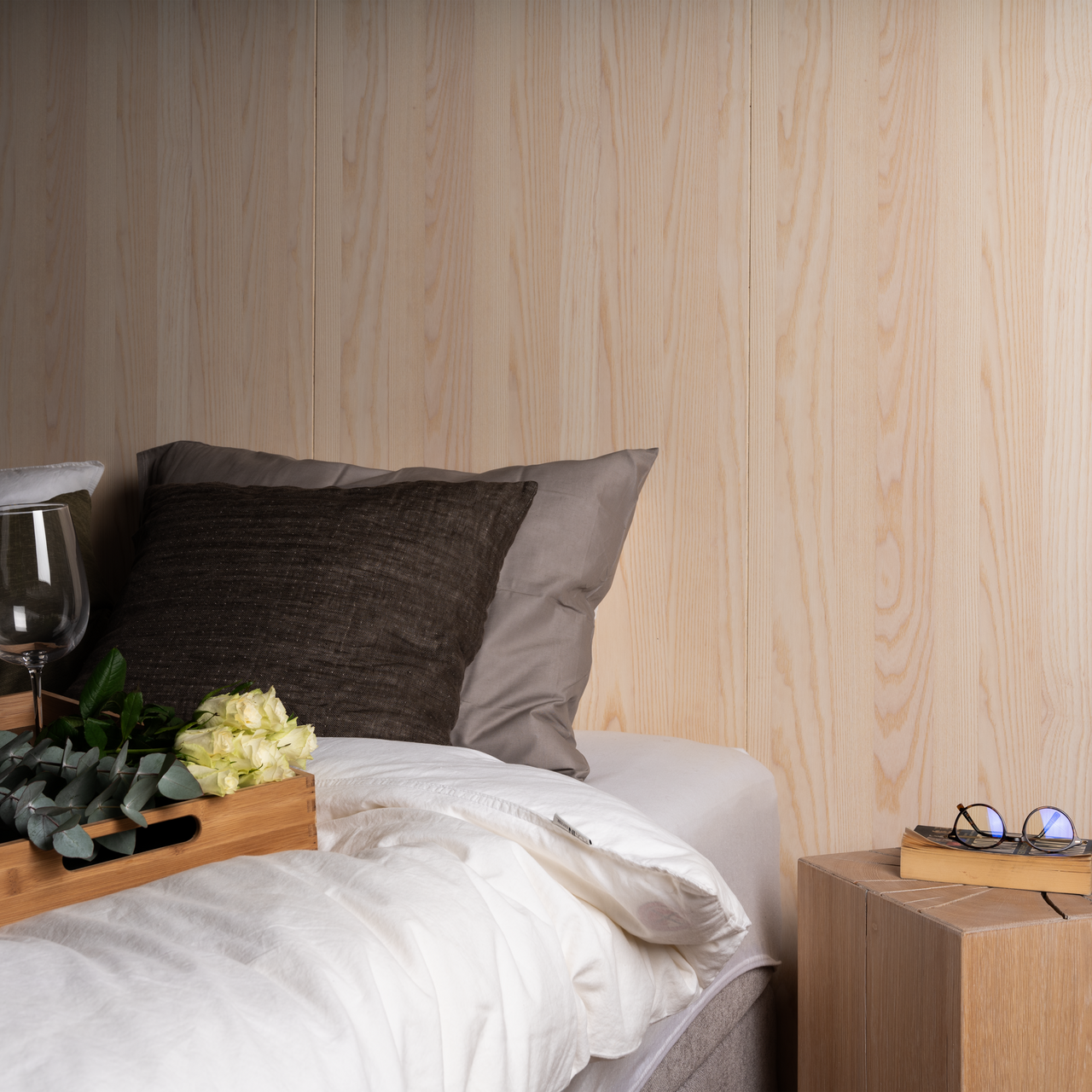 Finervariasjoner: Tre er et levende materiale, og det er det som gir liv til ferdig montert vegg/tak. Det anbefales å sortere platene for å skape «sitt bilde» før de monteres på vegg/tak. Det kan være små variasjoner i finer uttrykket, og dette er naturlig.